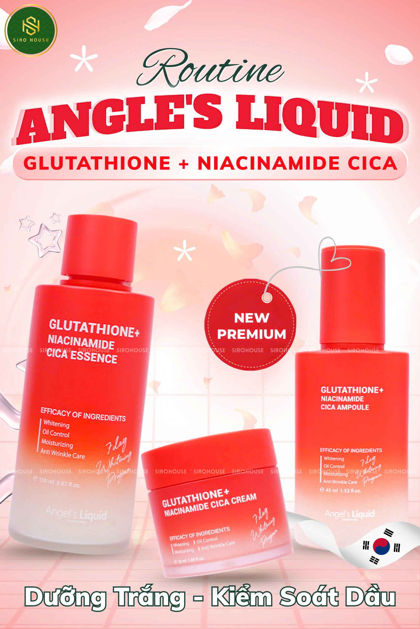 Bộ dưỡng trắng, kiểm soát dầu & thu nhỏ lỗ chân lông ANGEL'S LIQUID Glutathione + Niacinamide Cica