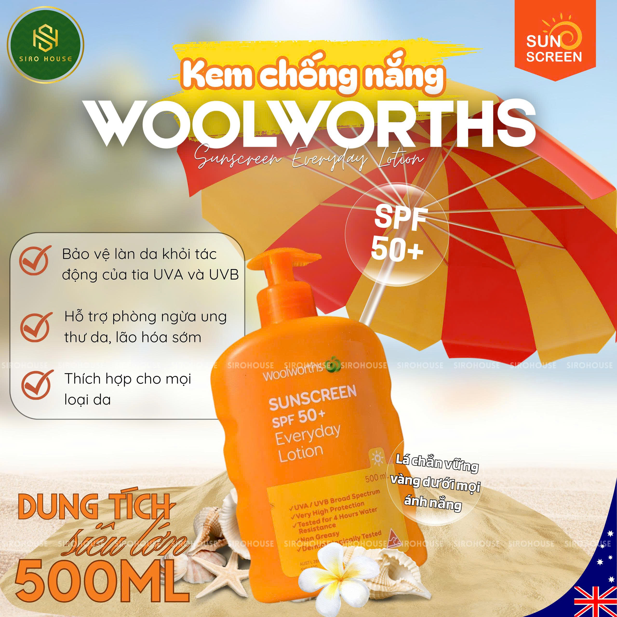 Kem chống nắng WOOLWORTHS Everyday Lotion SPF 50+ Sunscreen 500mL