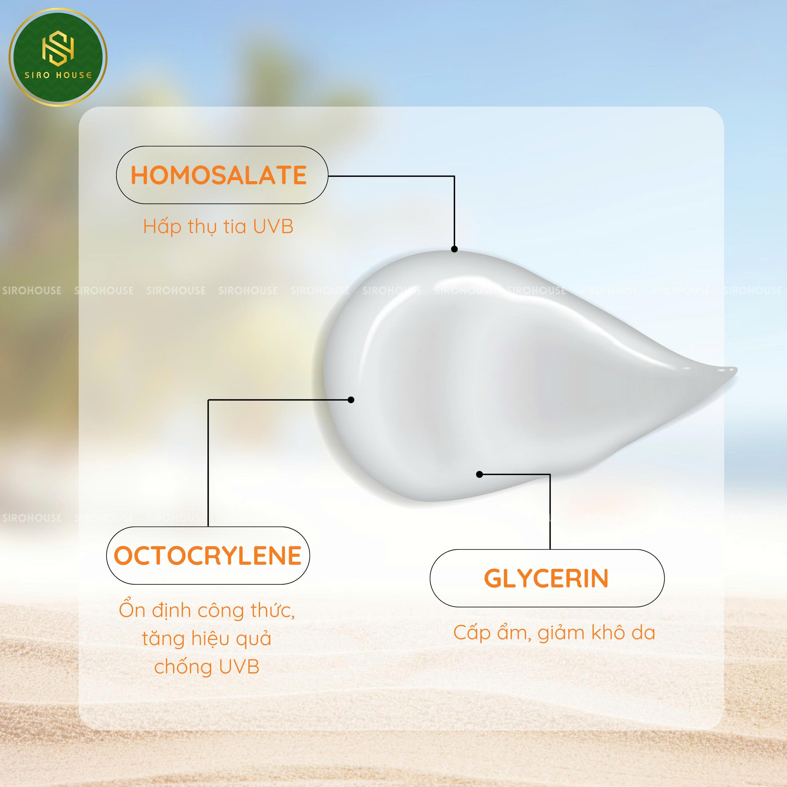 Dưỡng ẩm nhẹ nhàng, giúp da mềm mượt và không bị khô căng dưới nắng.
