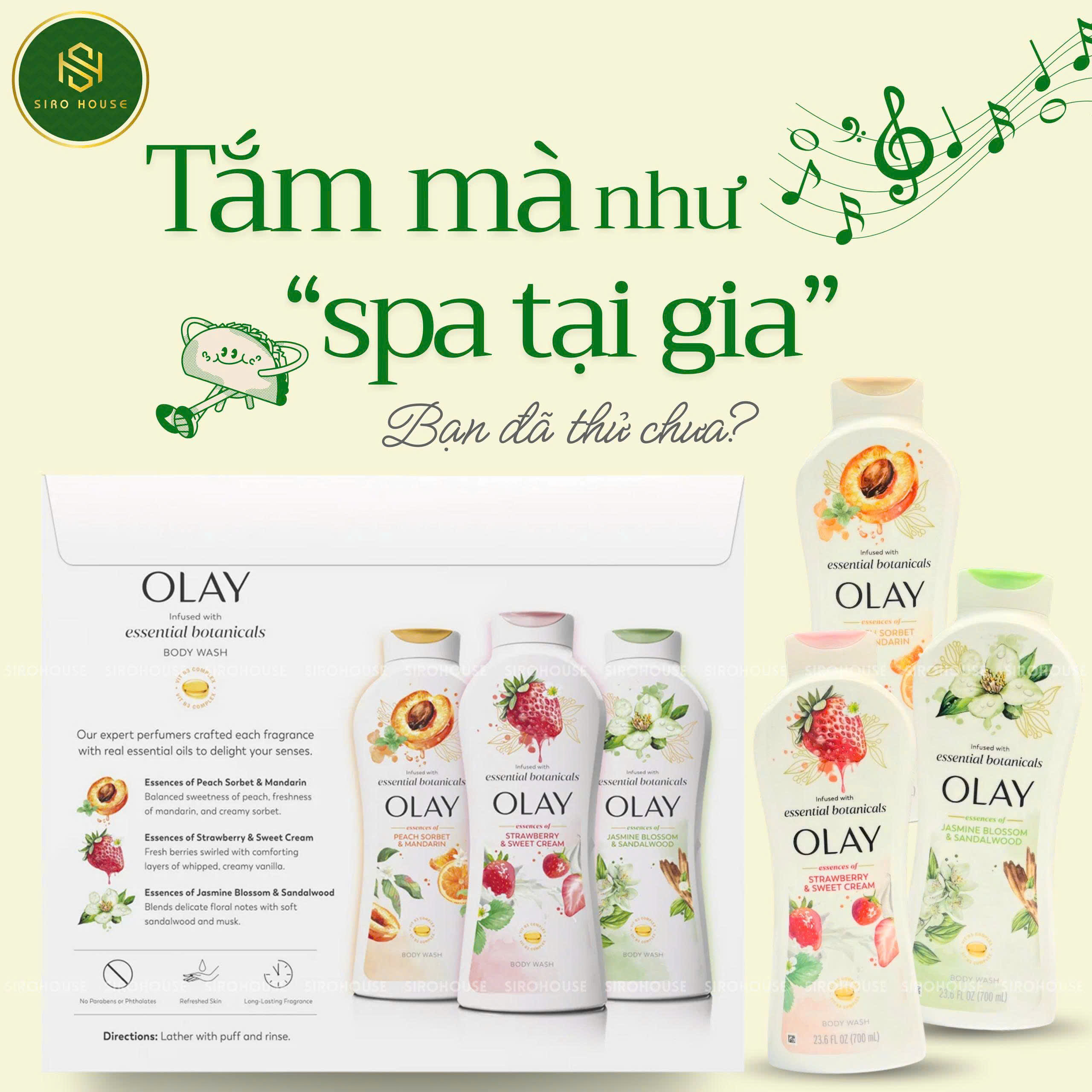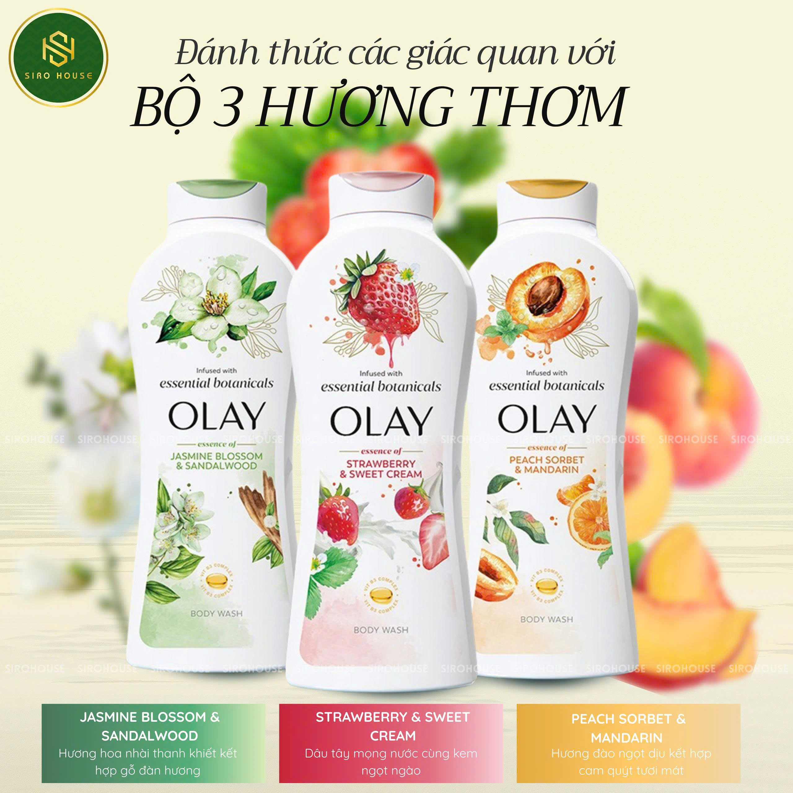 • Sữa Tắm OLAY Infused With Essential Botanicals 700mL (Strawberry & Sweet Cream, Jasmine Blossom & Sandalwood, Peach Sorbet & Mandarin)