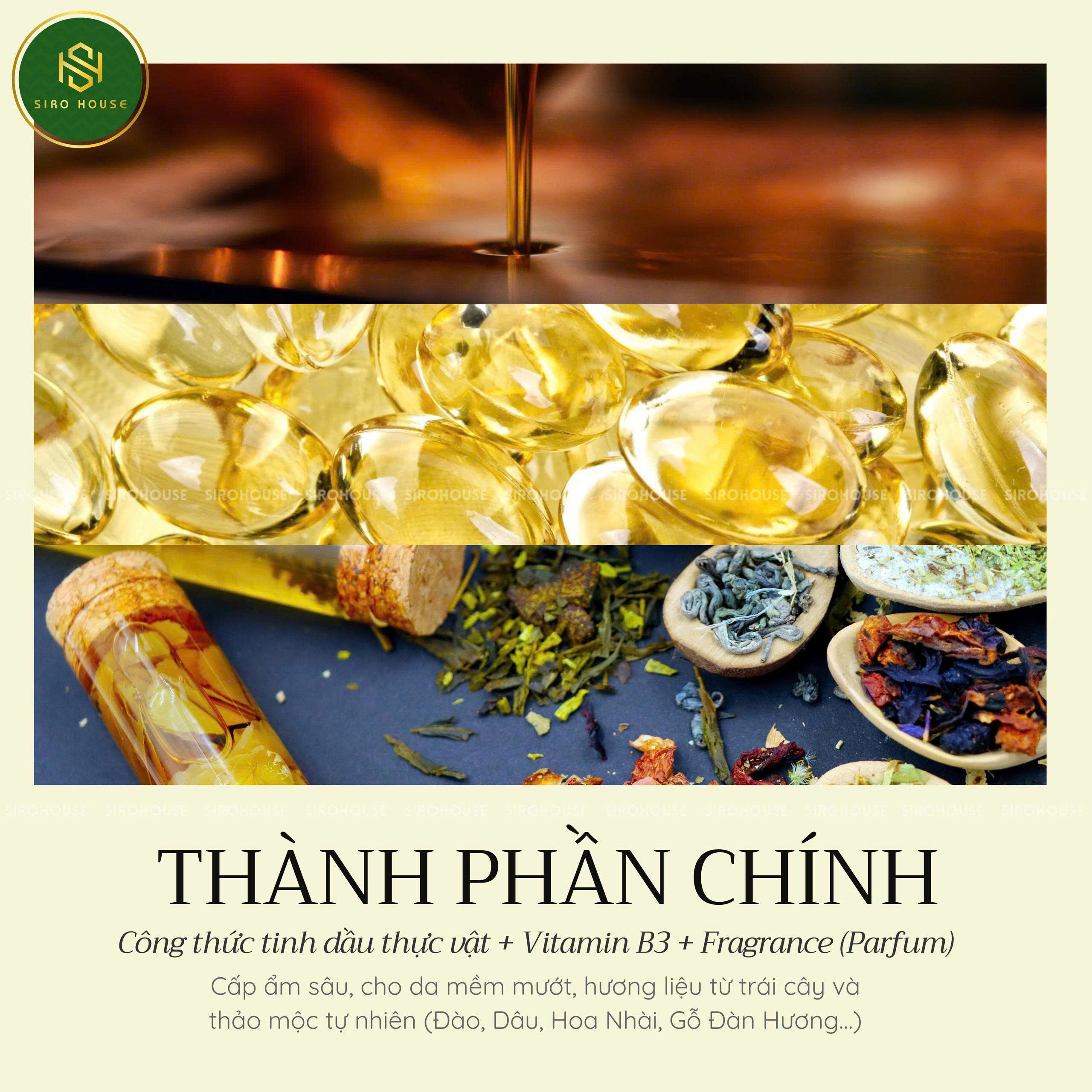 • Dầu thiết yếu thực vật: Chiết xuất từ tinh dầu tự nhiên (dâu tây, nhài, đào tùy phiên bản), mang hương thơm tinh khiết và lợi ích thư giãn.