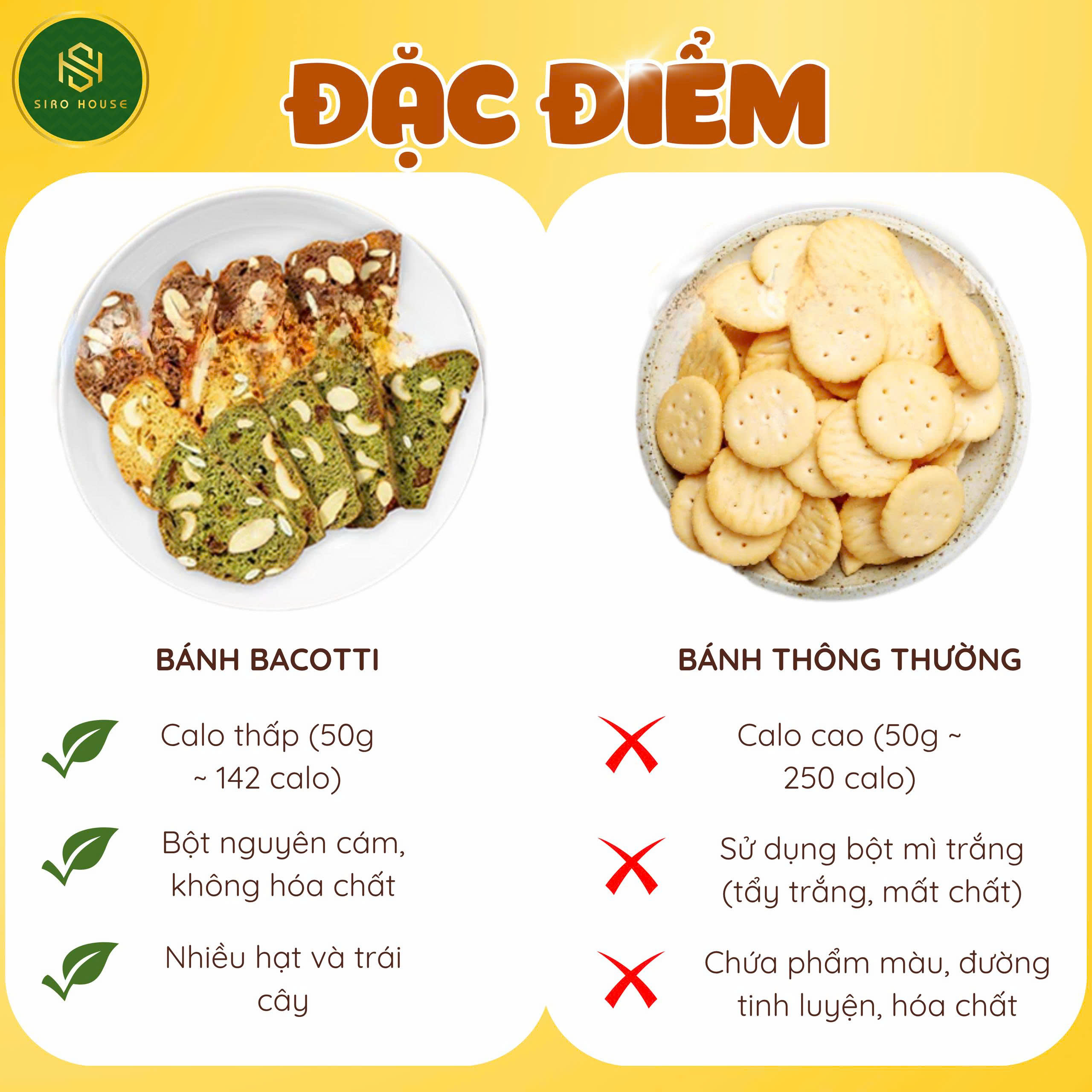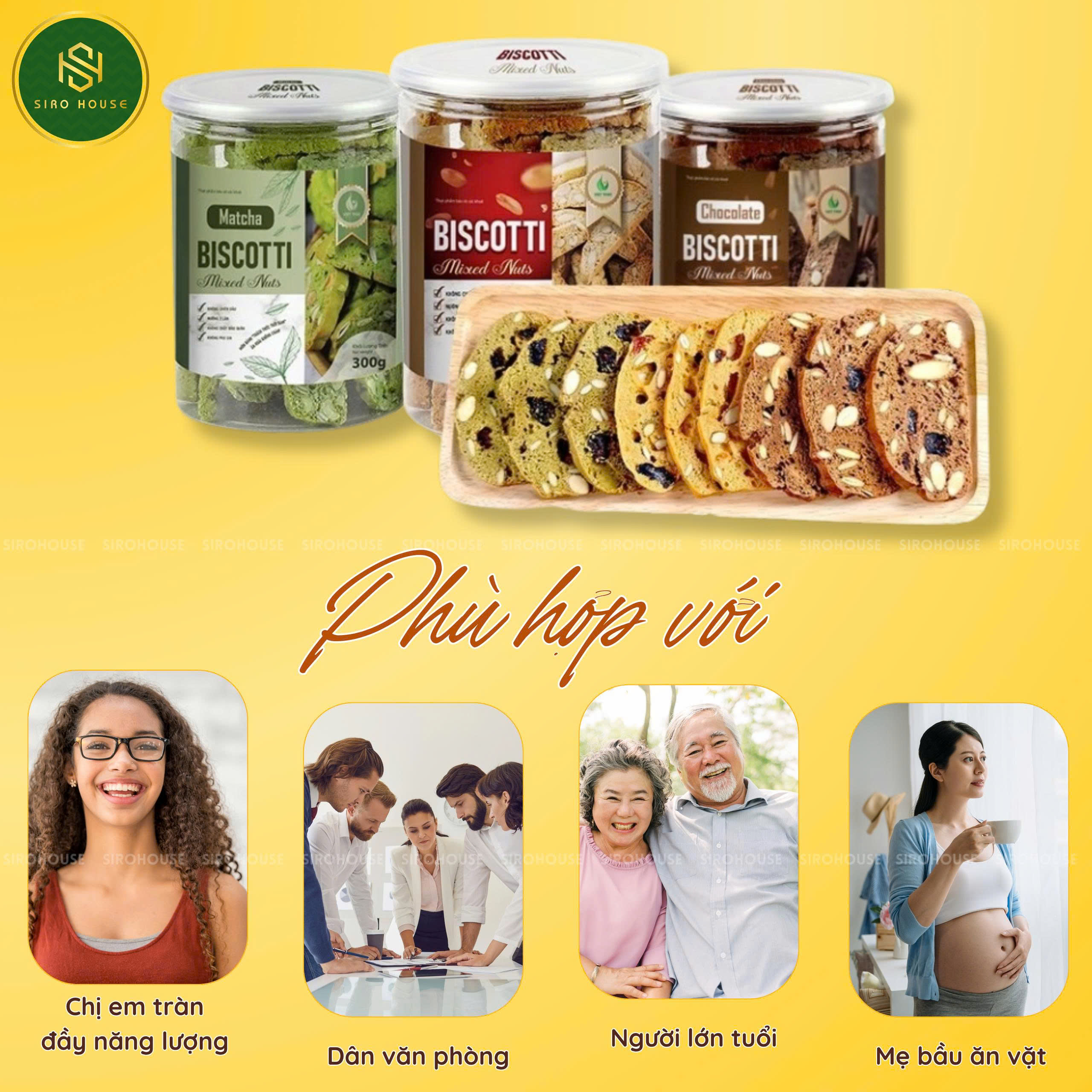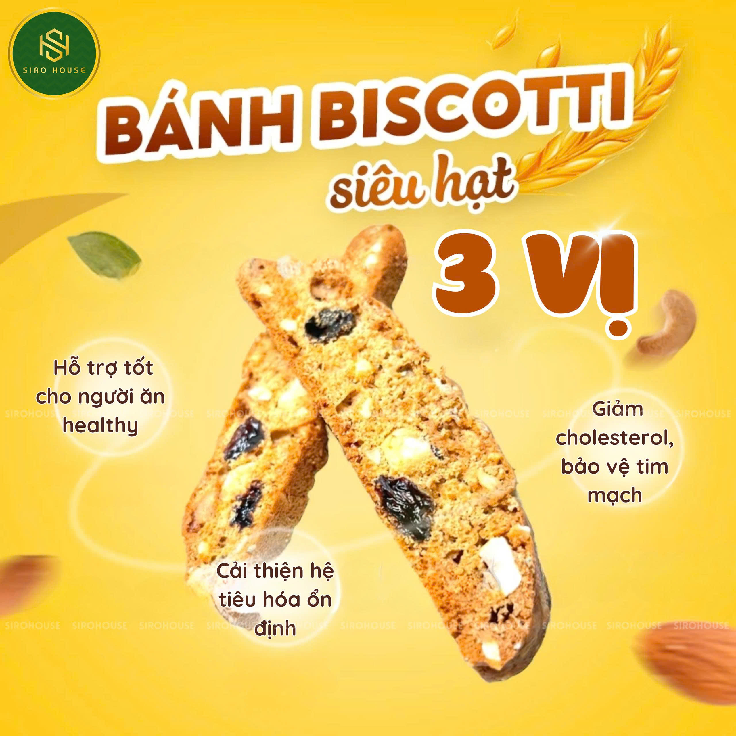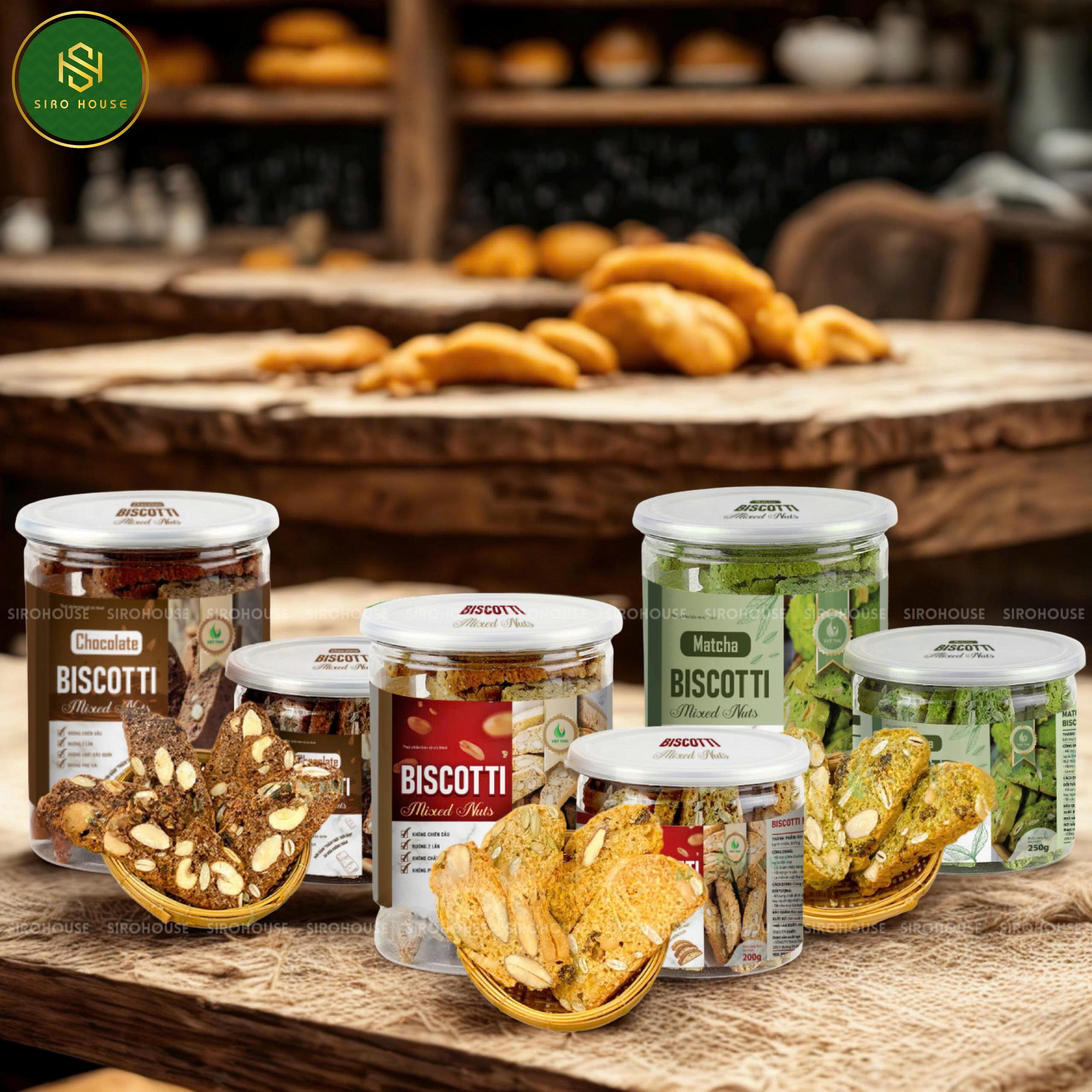 • Biscotti Chocolate: Hòa quyện hương cacao tự nhiên cùng hạt dinh dưỡng, mang đến vị ngọt nhẹ, đậm đà, thích hợp cho tín đồ chocolate.