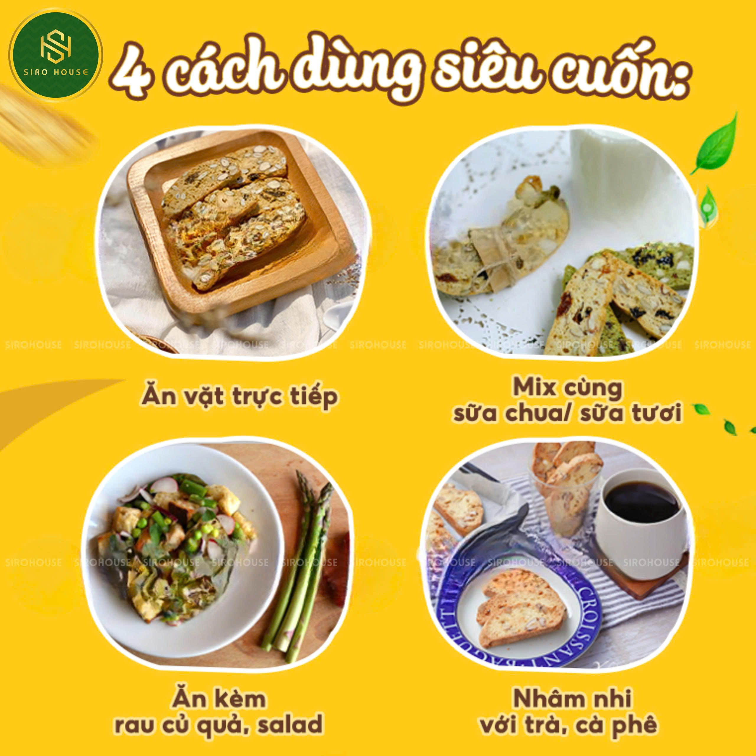 • Dùng kèm trà, cà phê, sữa chua hoặc salad để tăng hương vị.