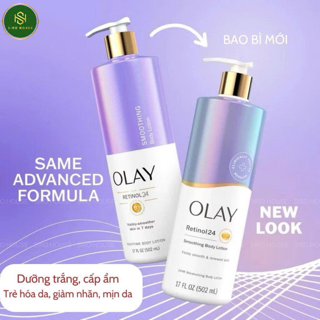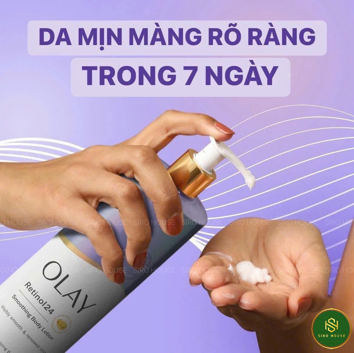 Dưỡng thể ngừa lão hóa OLAY Retinol & Vitamin B3+ Lotion 502mL là sản phẩm kem dưỡng da body cao cấp từ OLAY, thương hiệu chăm sóc da hàng đầu với hơn 70 năm kinh nghiệm. Công thức kết hợp Retinol (dẫn xuất vitamin A) và Vitamin B3 Complex (Niacinamide), giúp làm mịn da, tăng cường độ ẩm 24 giờ và chống lão hóa hiệu quả. Sản phẩm thẩm thấu sâu đến 10 lớp da, mang lại làn da mịn màng, rạng rỡ mà không nhờn dính. Phù hợp cho mọi loại da, đặc biệt da khô, xỉn màu hoặc có dấu hiệu lão hóa, đây là giải pháp dưỡng body toàn diện cho routine hàng ngày.