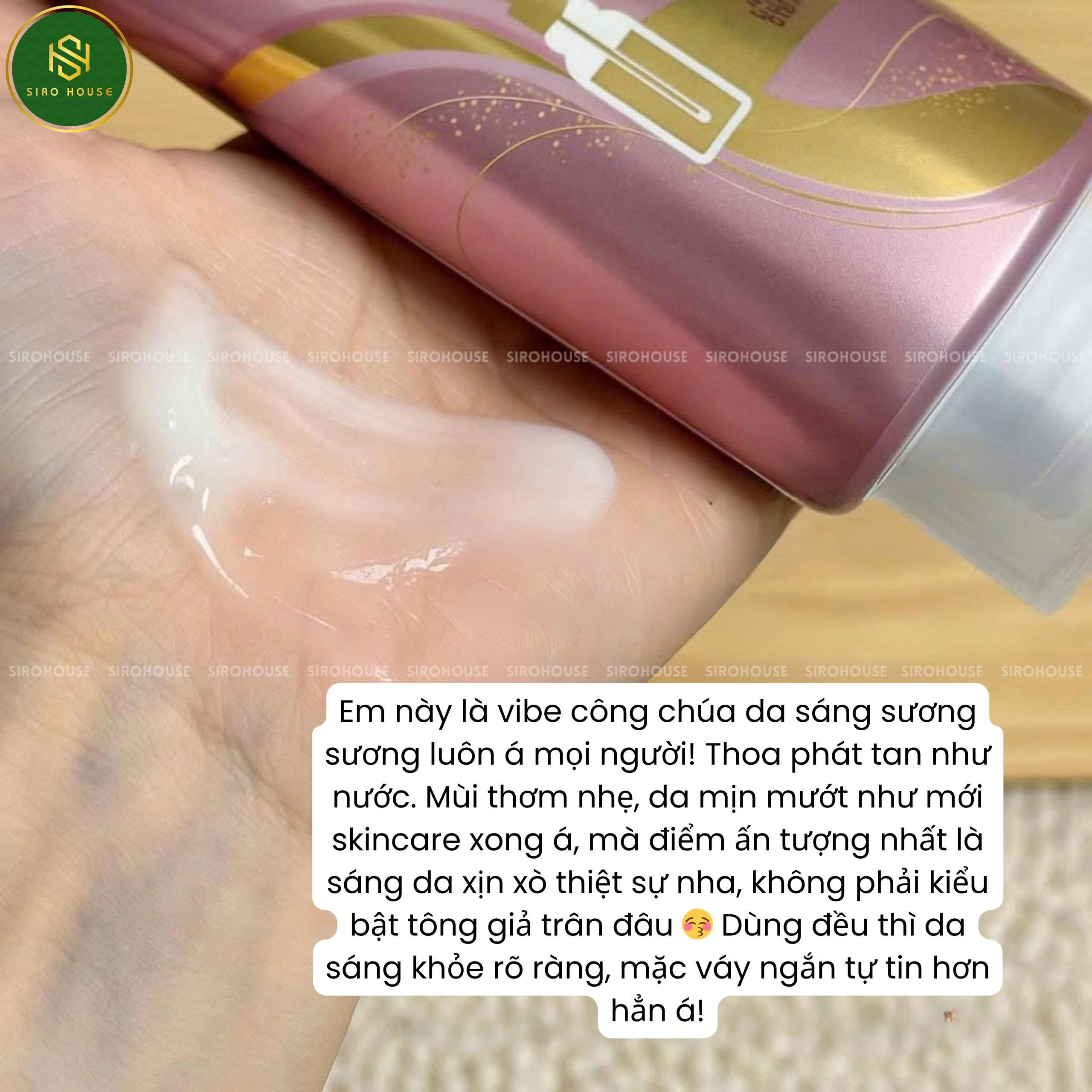 Kết cấu sữa dưỡng thể lỏng nhẹ, thẩm thấu nhanh, không gây nhờn rít.