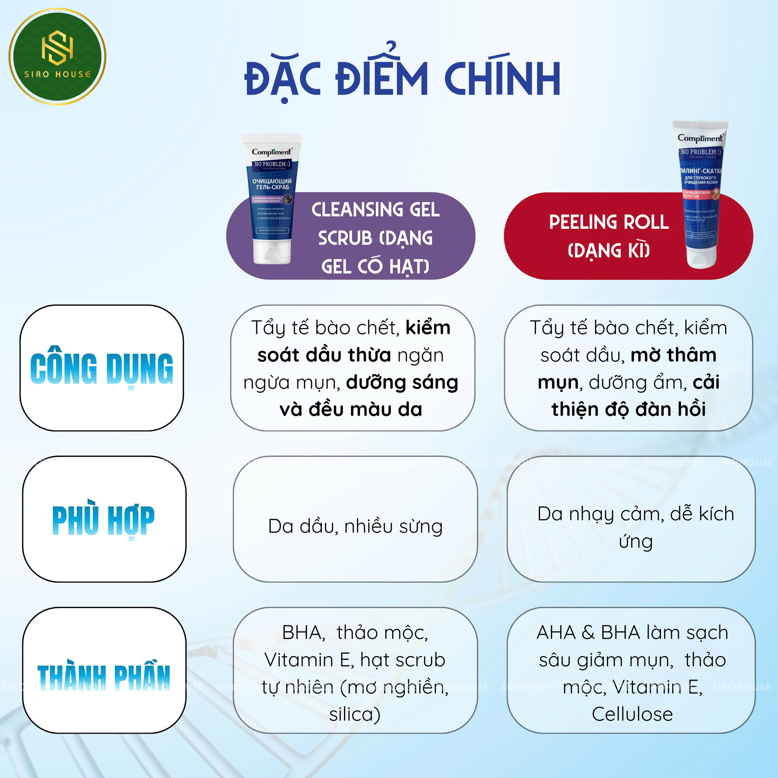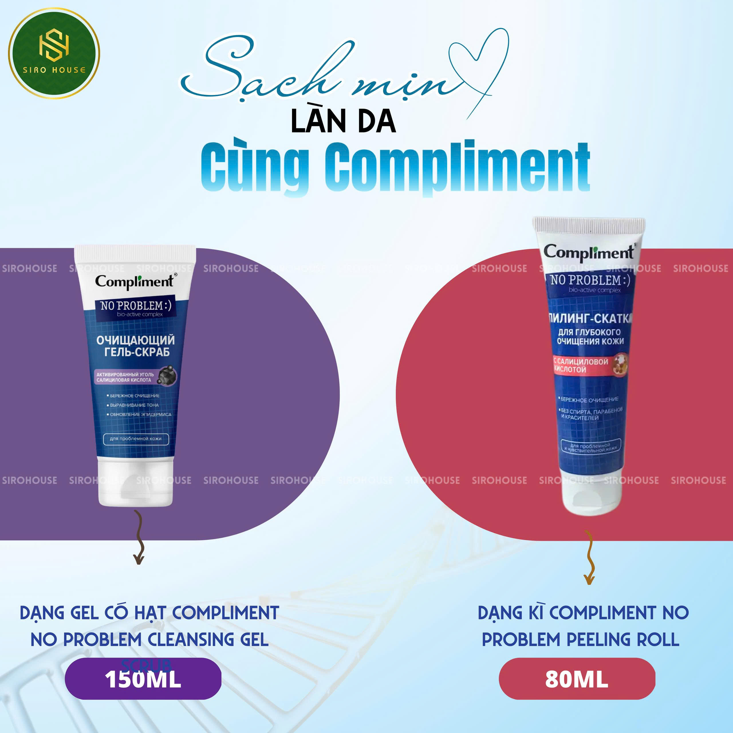 Tẩy da chết COMPLIMENT No Problem Cleansing Gel Scrub 150mL & Peeling Roll Salicylic Acid 80mL