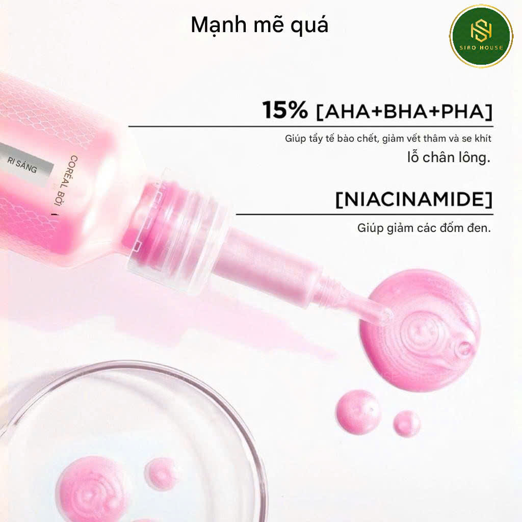 - Tẩy da chết nhẹ nhàng: Kết hợp AHA, BHA, PHA loại bỏ tế bào chết mà không gây kích ứng.