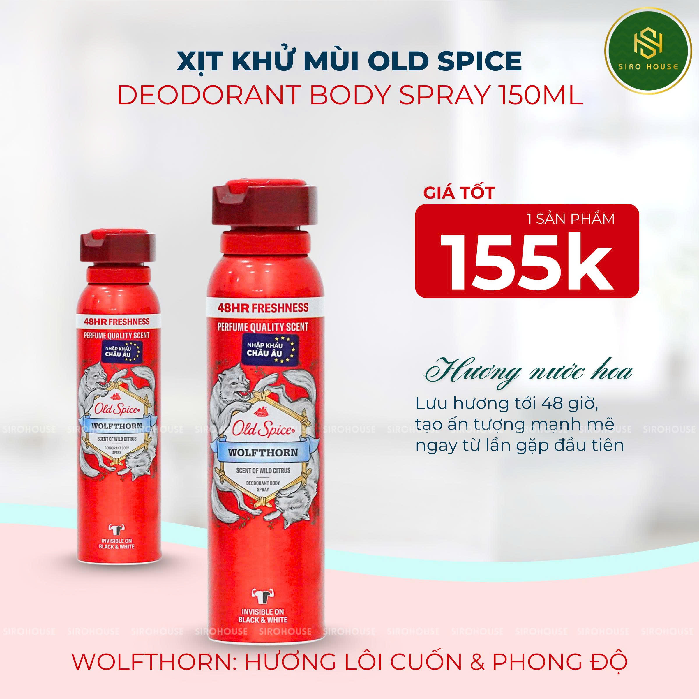 Xịt khử mùi OLD SPICE 150mL – Captain, Whitewater, Wolfthorn